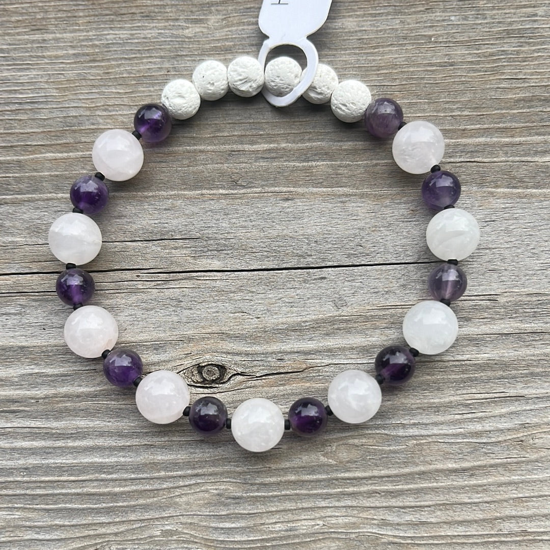 Amethyst, Rose Quartz and Lava stone crystal bracelet - 7 1/4”.