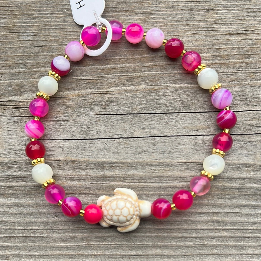 Agate, mother of pearl and turquoise turtle crystal bracelet made to 7”.